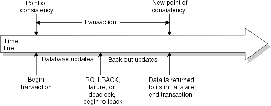 즉, 트랜잭션이 수행되기 전에 데이터베이스가 일관된 상태였다면 트랜잭션의 수행이 완료된 후 결과를 반영한 데이터베이스도 또 다른 일관된 상태를 되어야 한다.