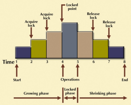 로크를 요청하는 것과 로크를 해제하는 것이 2단계로 이루어지는데, 로크 확장 단계가 지난 후에 로크 수축 단계에 들어가게 됨 일단 로크를 한 개라도 해제하면 로크 수축 단계에 들어감