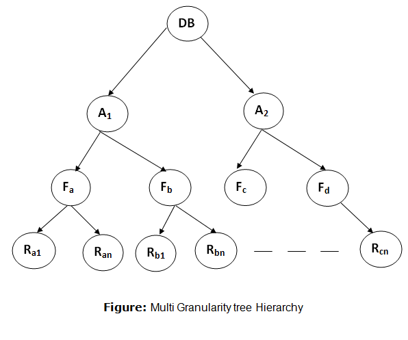 - 데이터베이스에서 로크 할 수 있는 단위로는 데이터베이스, 릴레이션, 디스크 블록, 투플 등