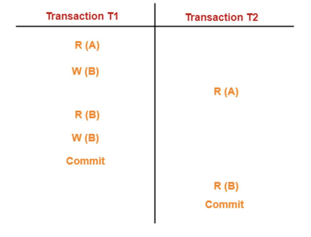 - 비직렬 스케줄은 트랜잭션이 돌아가면서 연산들을 실행하기 때문에 하나의 트랜잭션이 완료되기 전에 다른 트랜잭션이 연산이 실행될 수 있음.