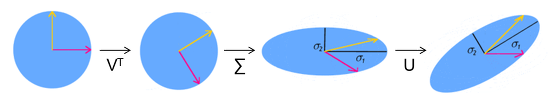 Ax는 x를 먼저 VT에 의해 회전시킨 후 Σ로 스케일을 변화시키고 다시 U로 회전시키는 것임을 알 수 있다.