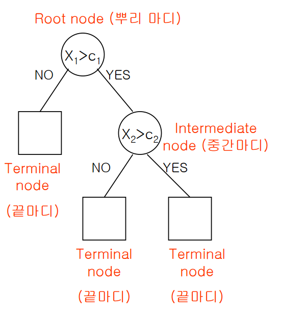 이 때 예측값의 종류는 terminal node 개수와 일치한다.