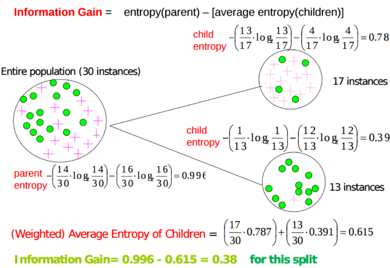 IG = 부모노드의entropy (impurity) –자식노드들의entropy (impurity)