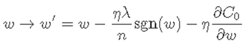 w부호에 따라 빼주므로 0 근처 값들이 0으로 수렴하여,