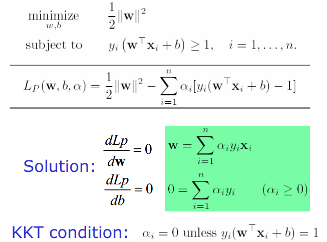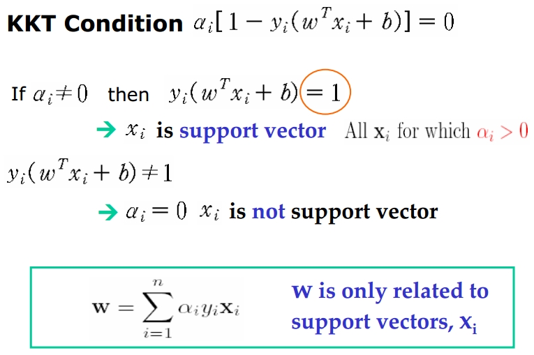 KKT 조건을 탐색하는 과정에서 w는 다음과 같이 도출되었고