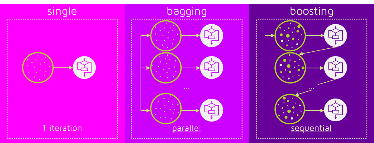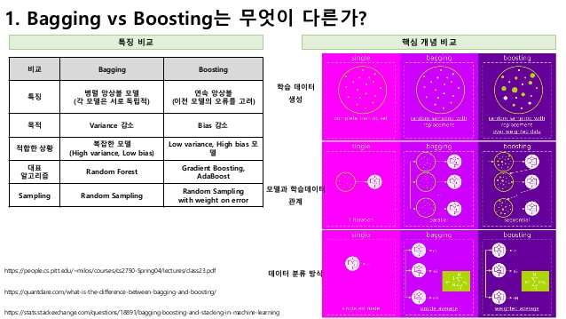 부스팅의 경우 전체 데이터에서 여러 샘플링 데이터를 추출하여